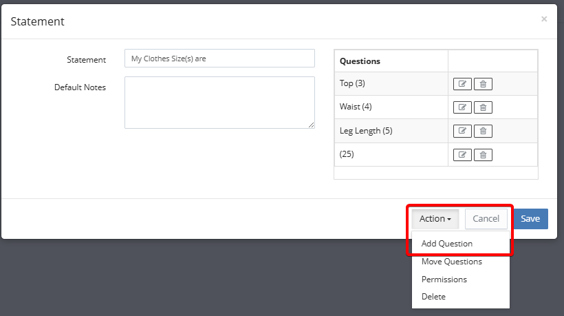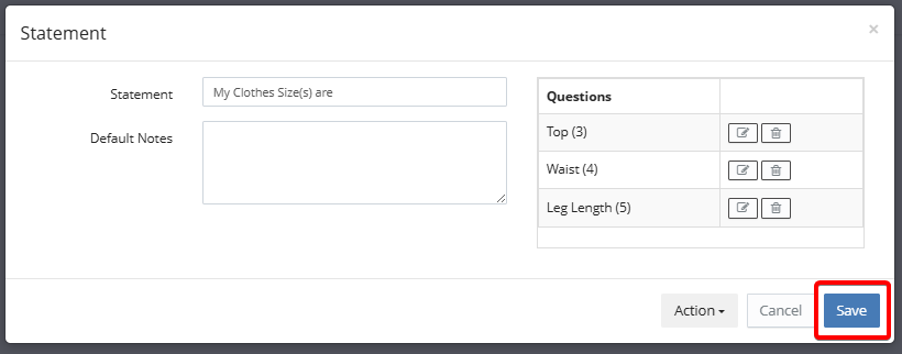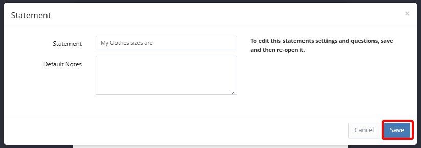 12.1. Clicking Save will show you the list of questions you have added within the Statement window. Click Save when you have added all your questions.