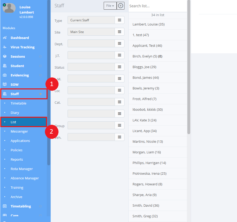 3.1 Once you have selected the blue Add Staff button, you will be taken back to the Staff List where your new Staff member will now appear.