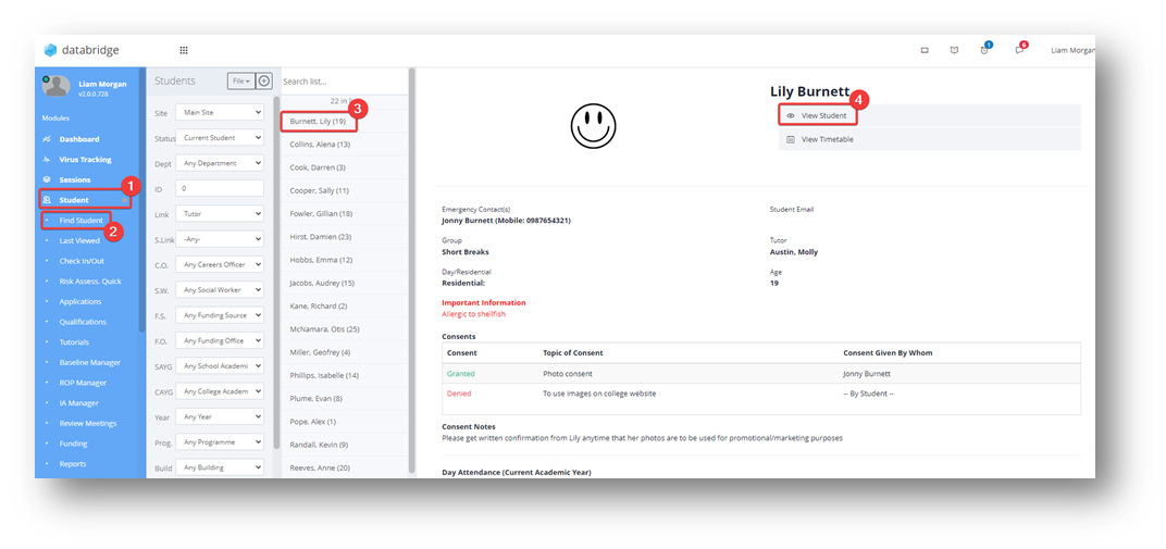 1. First head to the Student Record by clicking Student > Find Student > *Student Name* > View Student.