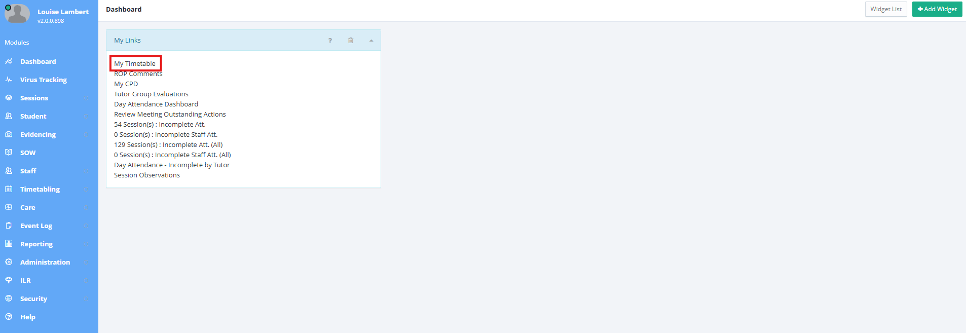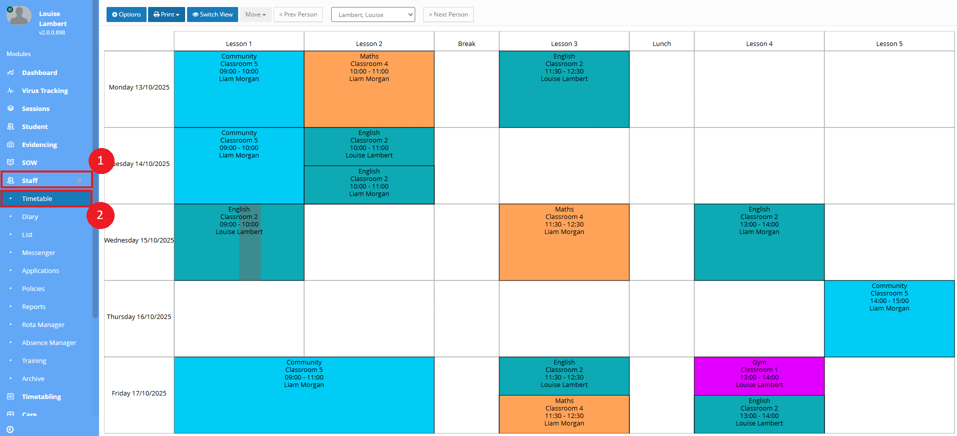4. Or by navigating to Staff > Timetable on the left hand navigation pane.