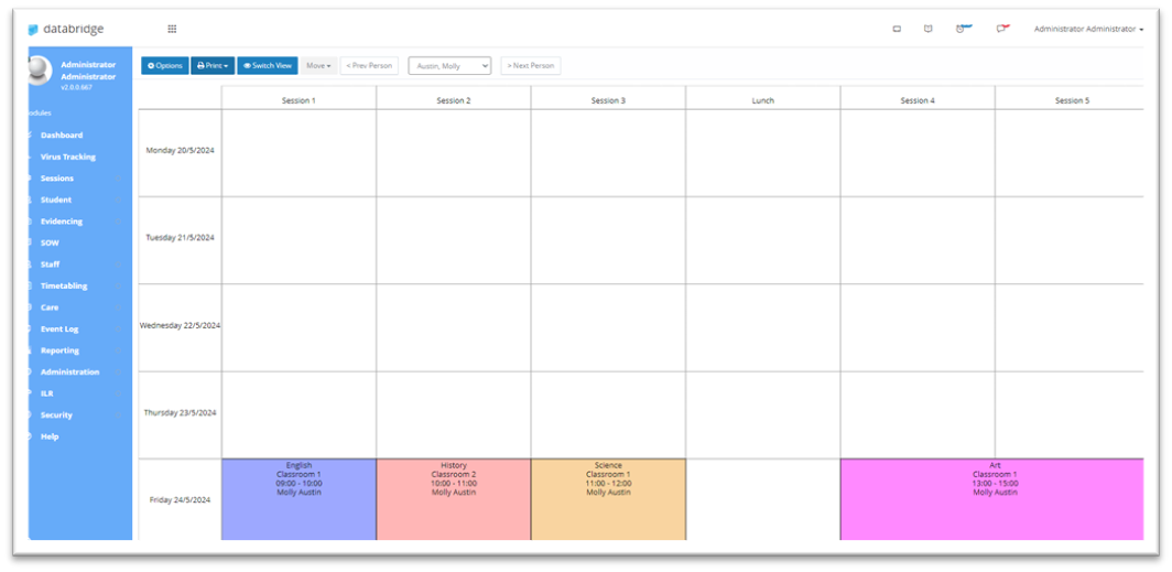 In this guide we will look at several ways in which you can view your timetable in Databridge.