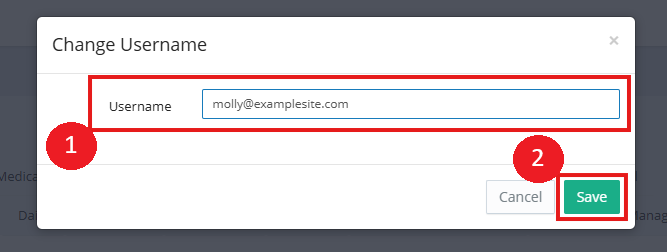 4. Clicking the Blue Spanner will open a pop-up window where you can set the Staff username. We advise using the staff members work email address. Once this has been set, click the green Save button.