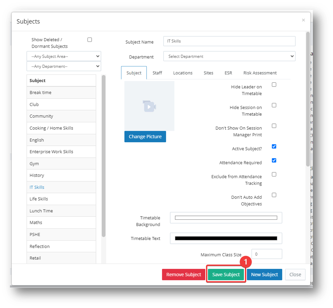 - Attendance Required can be unticked if you do not need to record Attendance for this Subject.