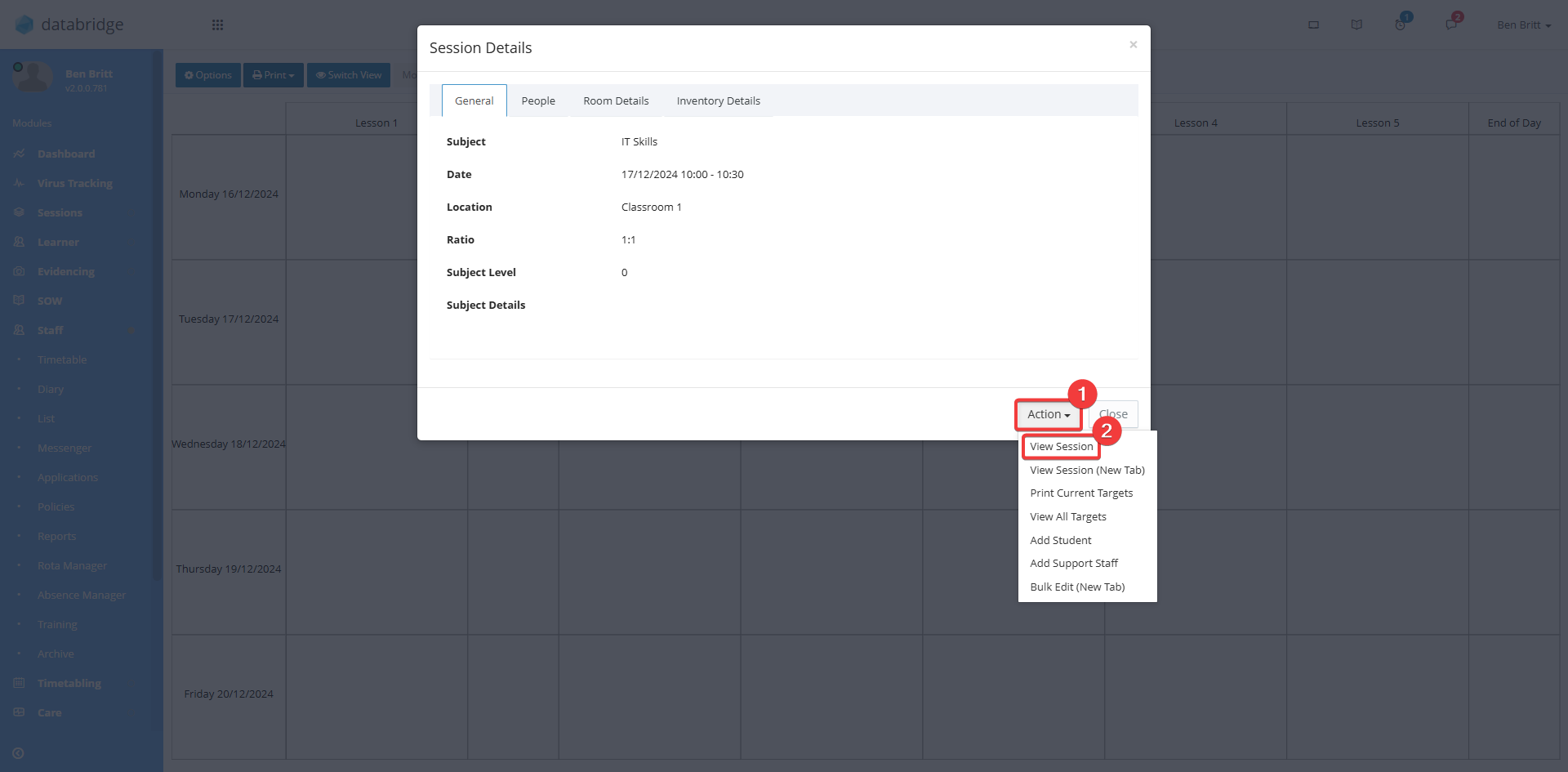 There are multiple ways to access a session plan on Databridge, not just via the timetable. If you have the widget My Sessions added to your dashboard, you can click on the notepad icon next to a session on the widget to be taken straight to the session plan