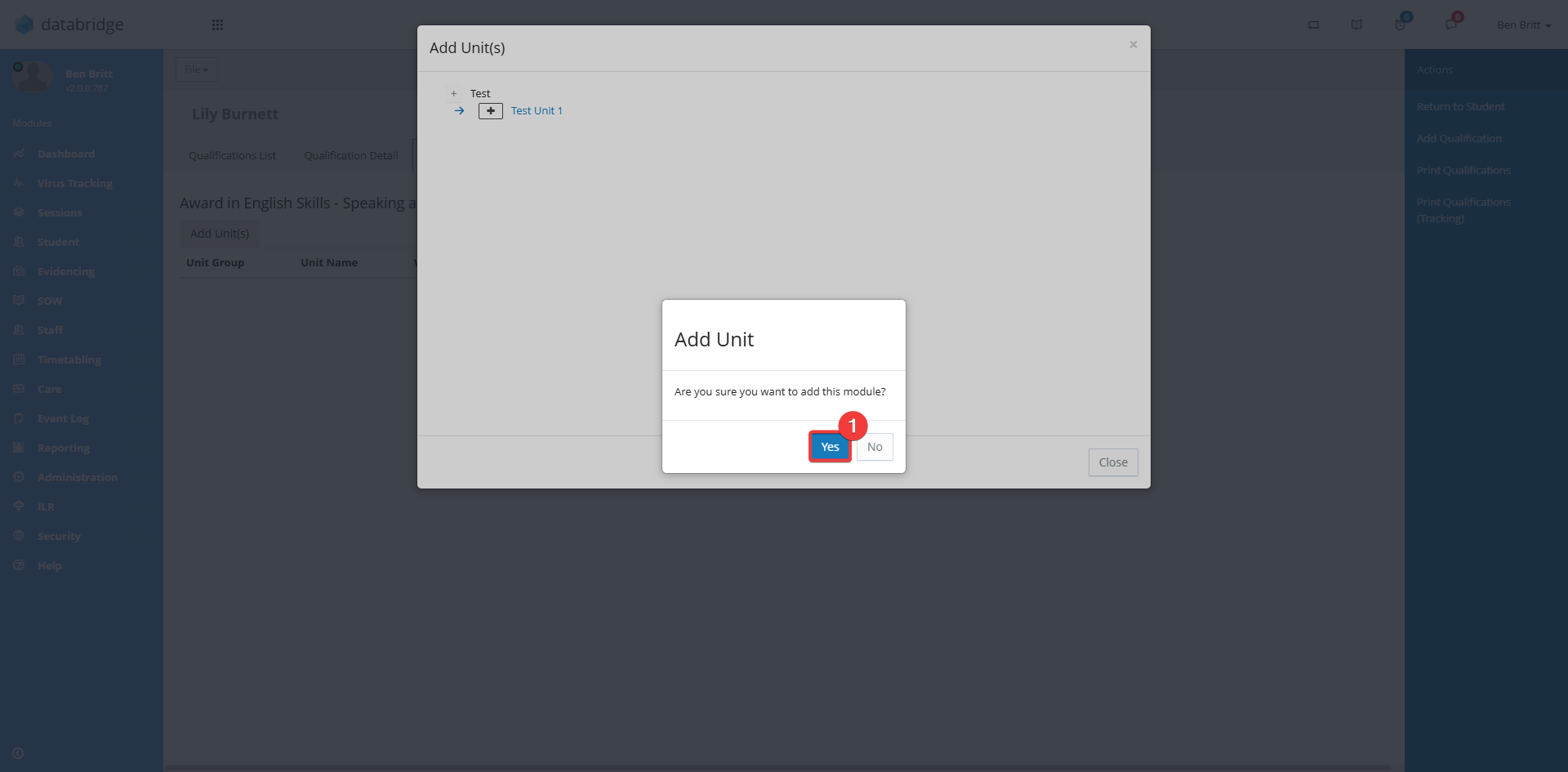 6. A pop-up will appear asking if you wish to add this Unit. Click Yes to add the Unit.