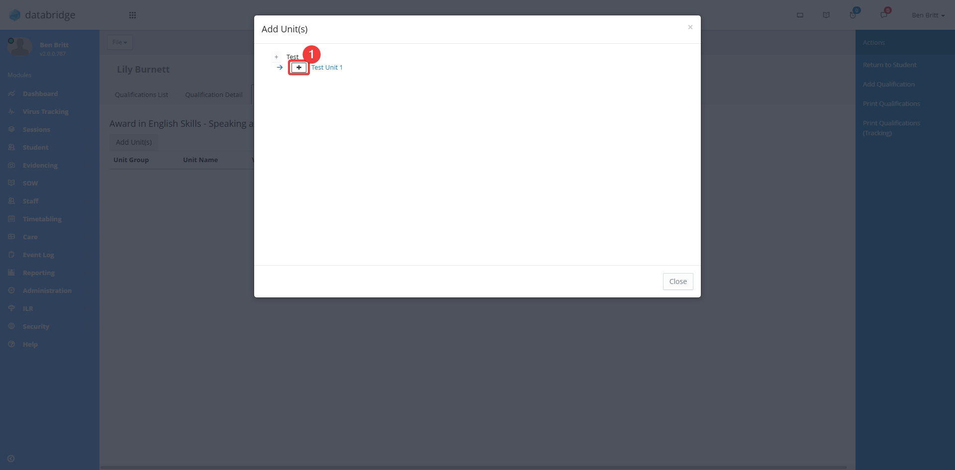 4. Similarly to when using the Qualification Manager screen, click the + icon next to a Qualification to assign it to this Student.