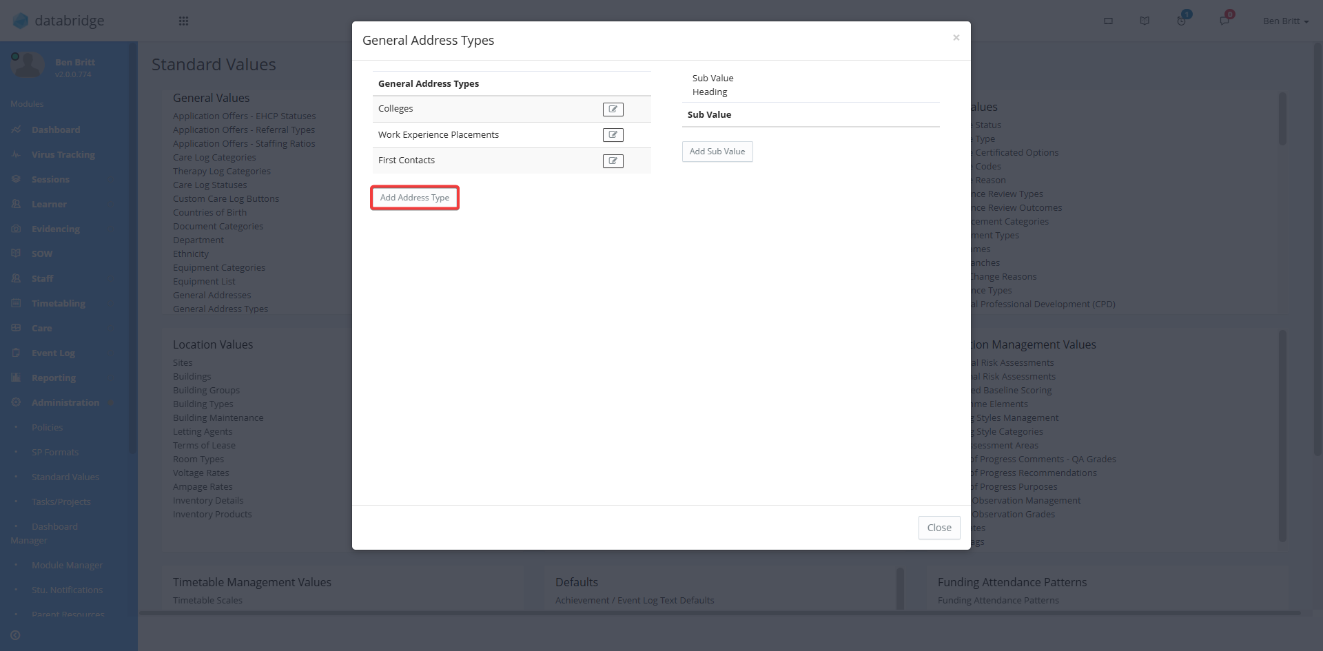 2. This will show address types already setup on your Databridge. To add a new address type, click Add Address Type.