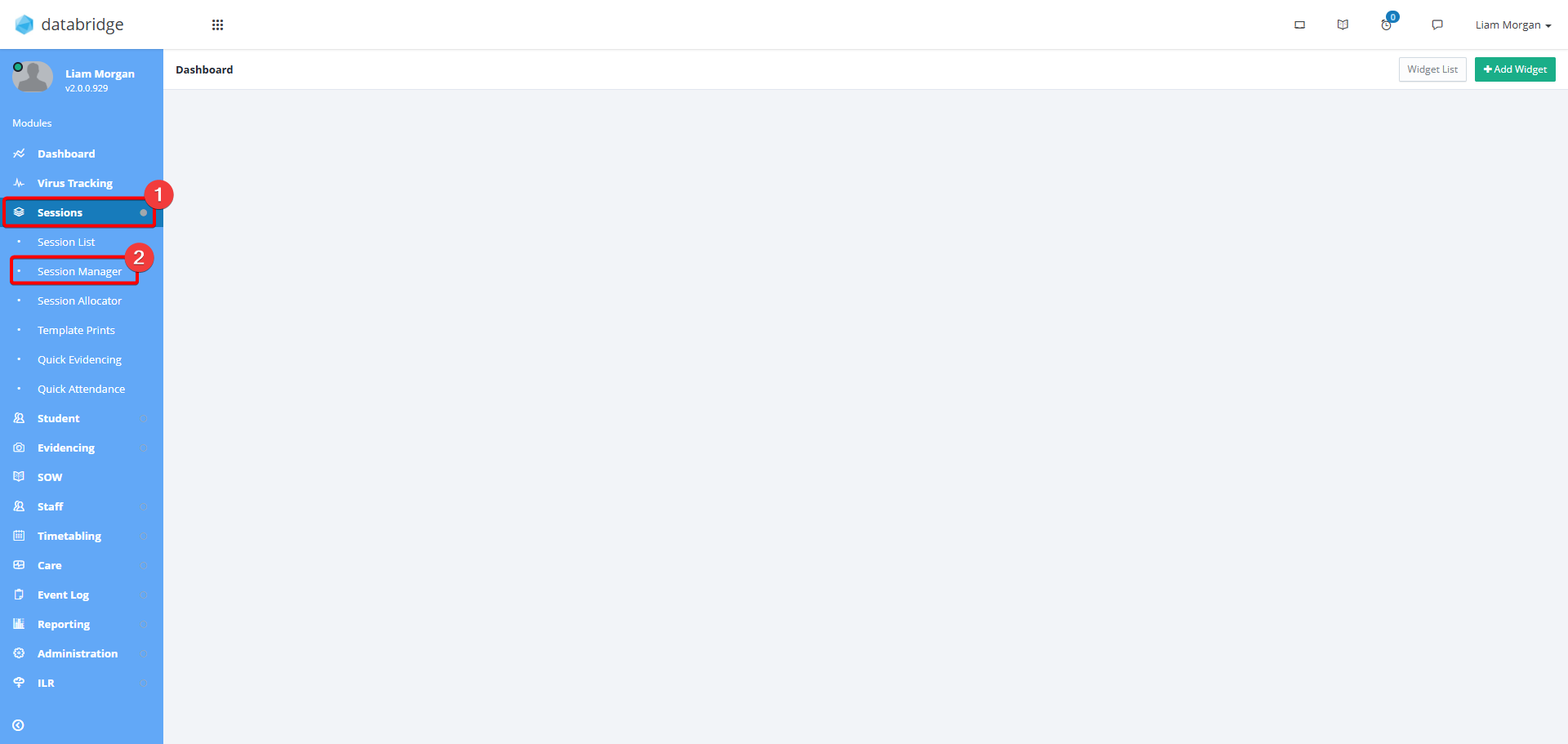 This function will provide a modal of all the Sessions currently listed, the Staff within those Sessions and their current Attendance Status.