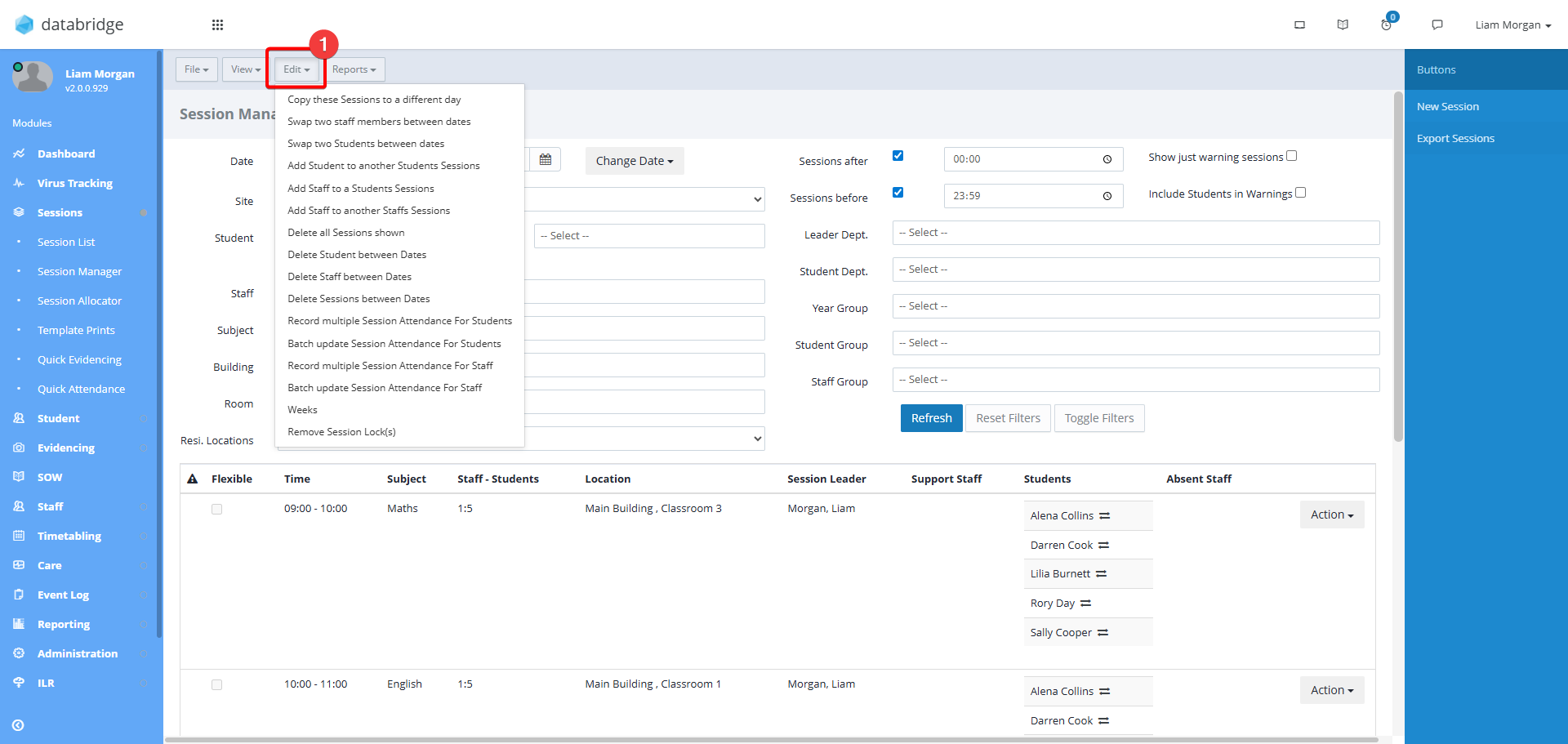 This option allows you to add a Student to all the Sessions another Student is currently in. This is useful for quick additions if a new Learner is joining later on for example and provides a quicker function for this than using Bulk Edit.