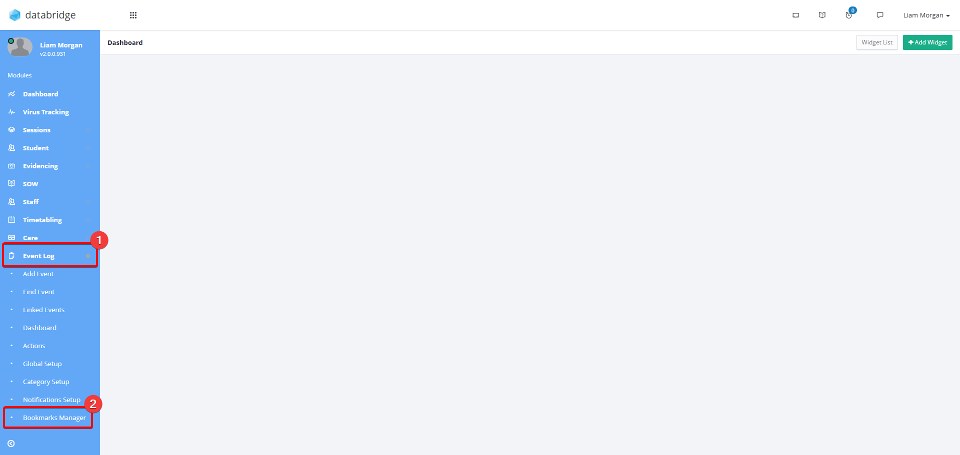 1. First you need to create the bookmarks relating to the Event. These are later used within your template as placeholders, similar to a mail merge. To manage these bookmarks navigate to Event Log > Bookmarks Manager.