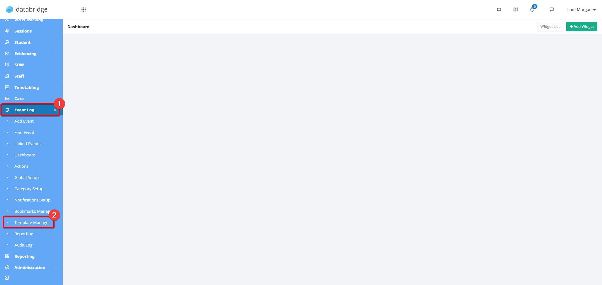 6. Lastly, the template needs to be uploading and linked to the Event Log Category. To do this, navigate to Event Log > Template Manager.