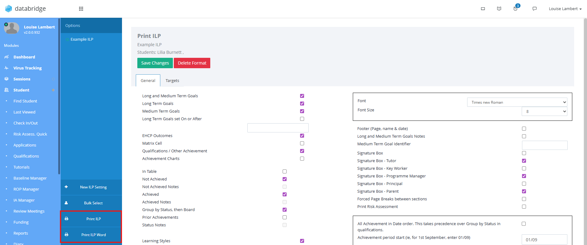 This guide will look at the Print ILP screen in Databridge for producing an individual learning plan.