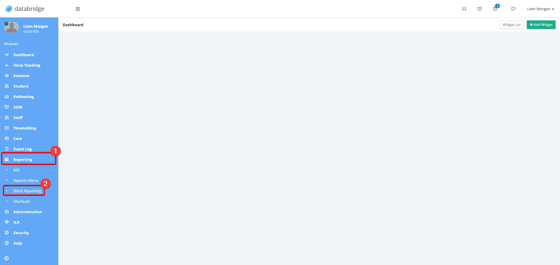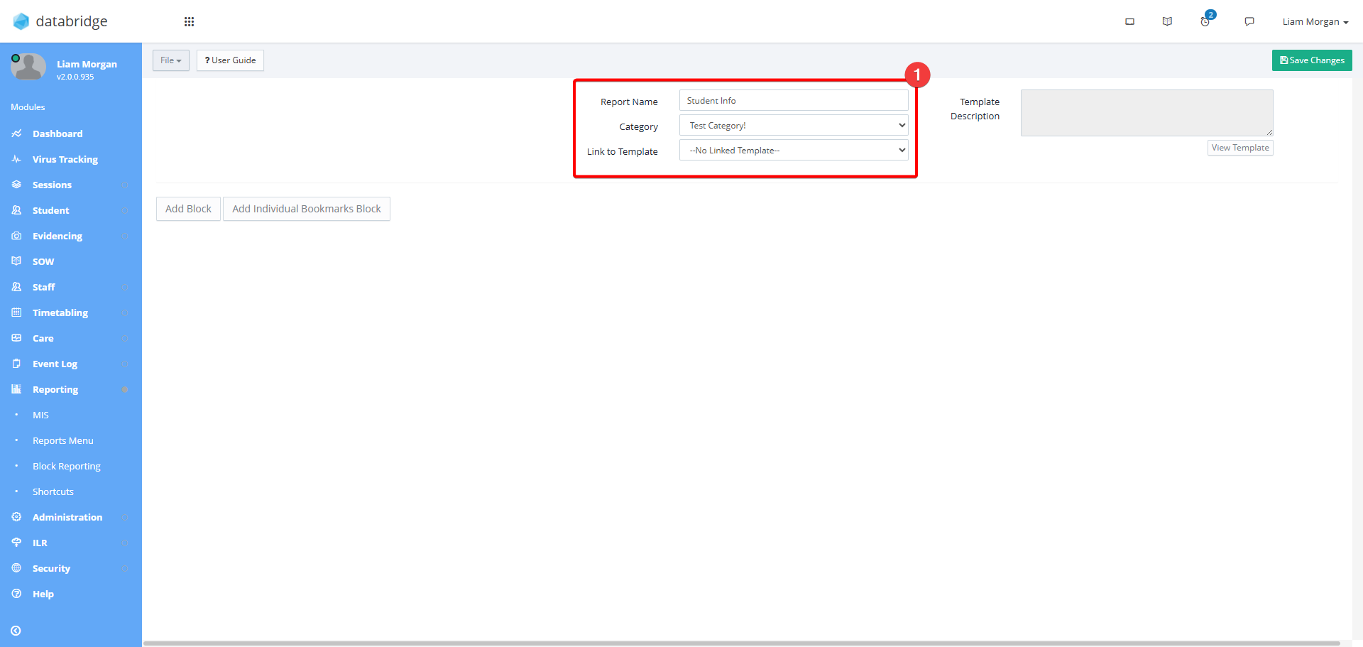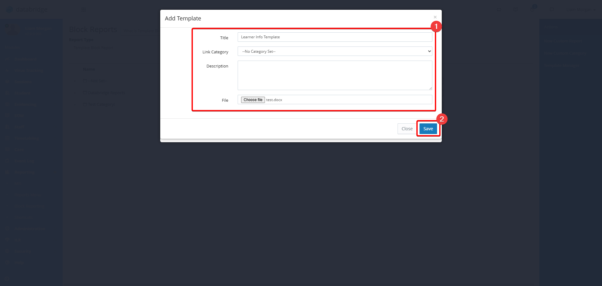 23. To upload your Template to Databridge, first navigate to the Template Block Report Menu via Reporting > Block Reporting.