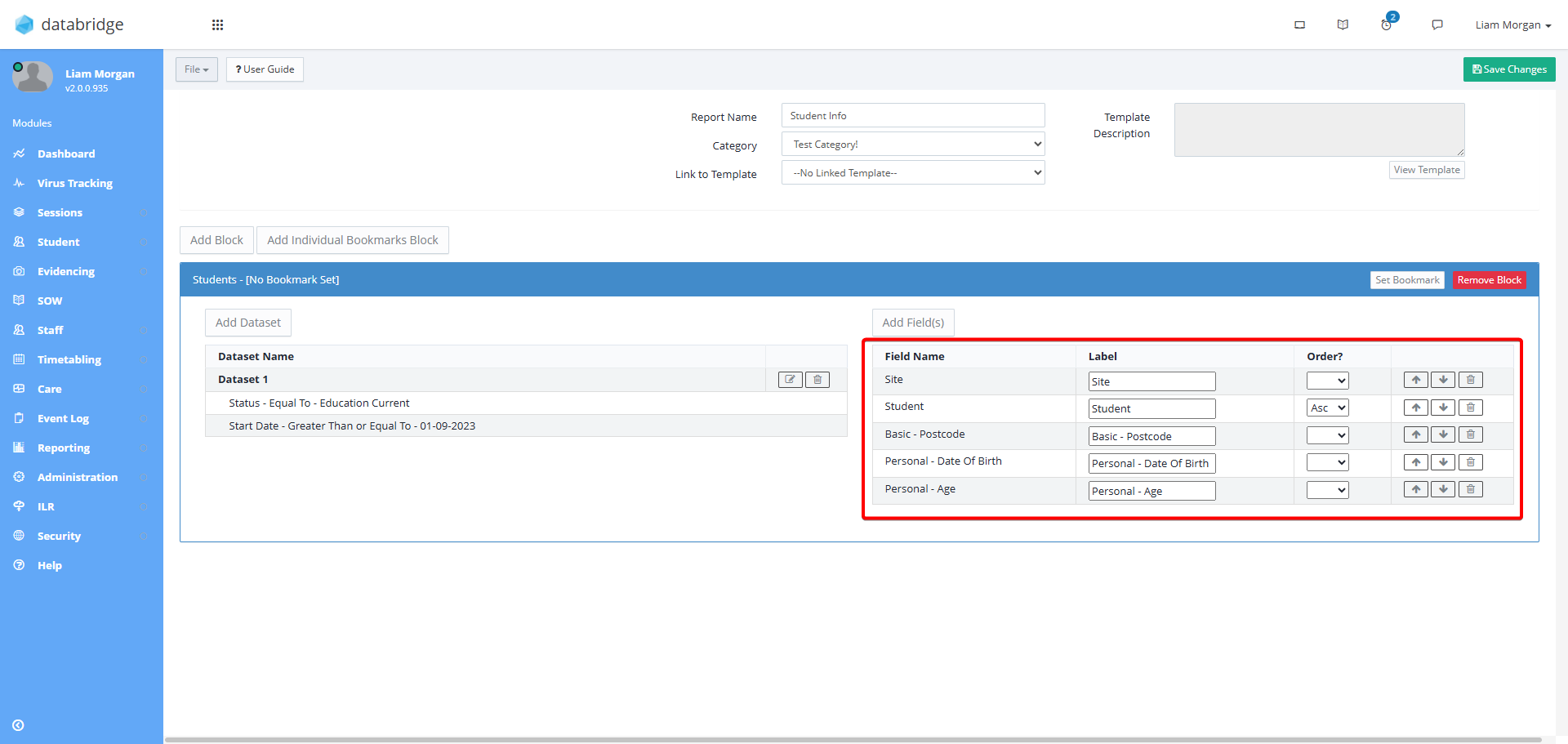 For this example, I am trying to create a Custom Report that shows me what medication a learner is prescribed, and a breakdown of their information.