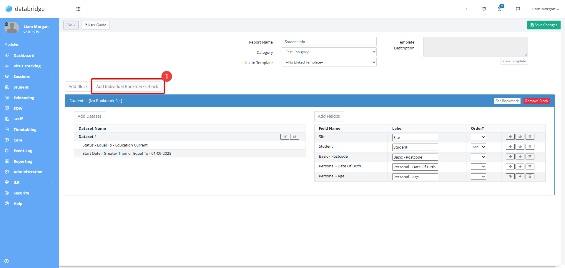 Creating Custom Reports - Adding Individual Bookmark Blocks