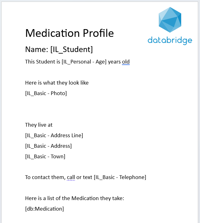 22. Next, add in the relevant Bookmarks, signposting where I want information on Databridge to appear on my printout.
