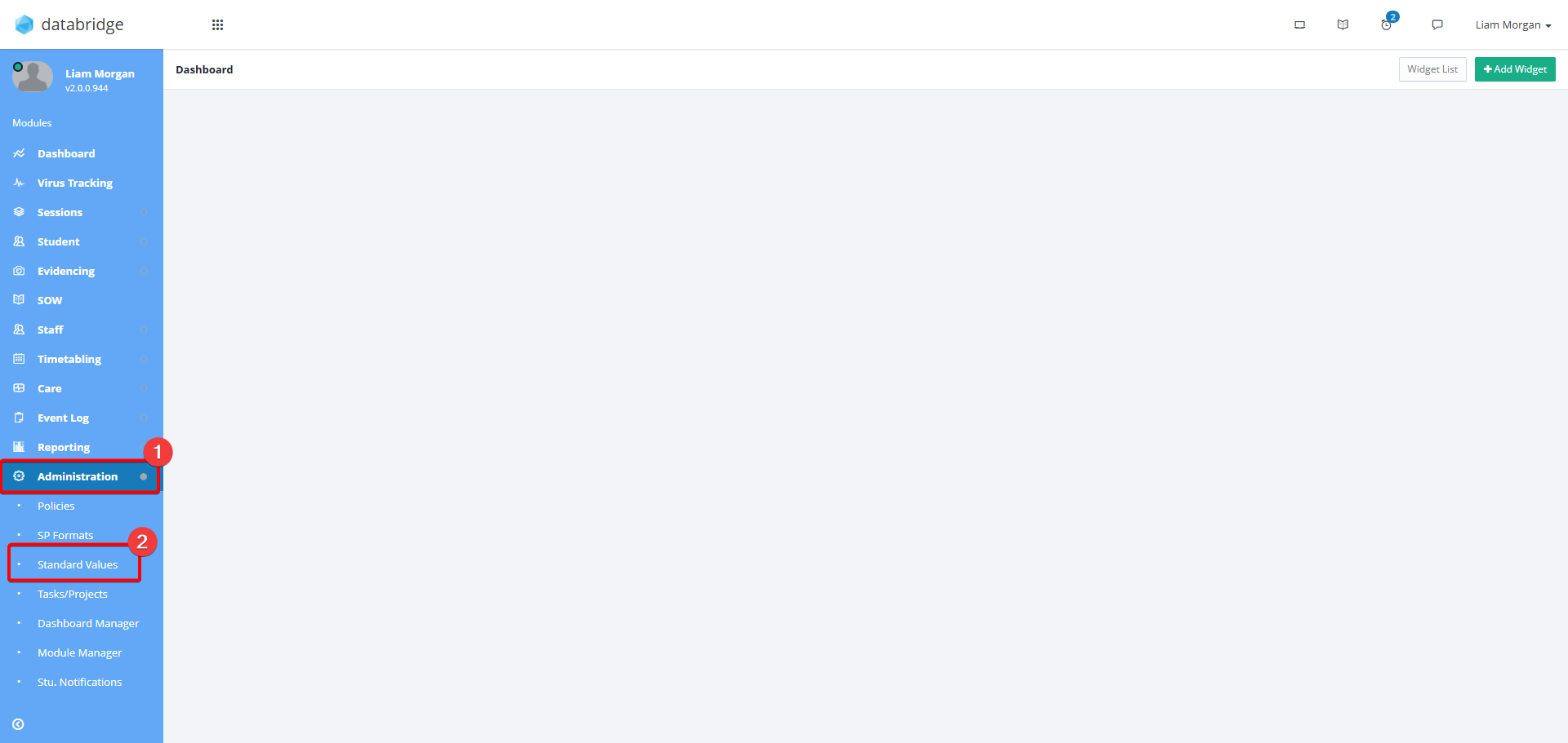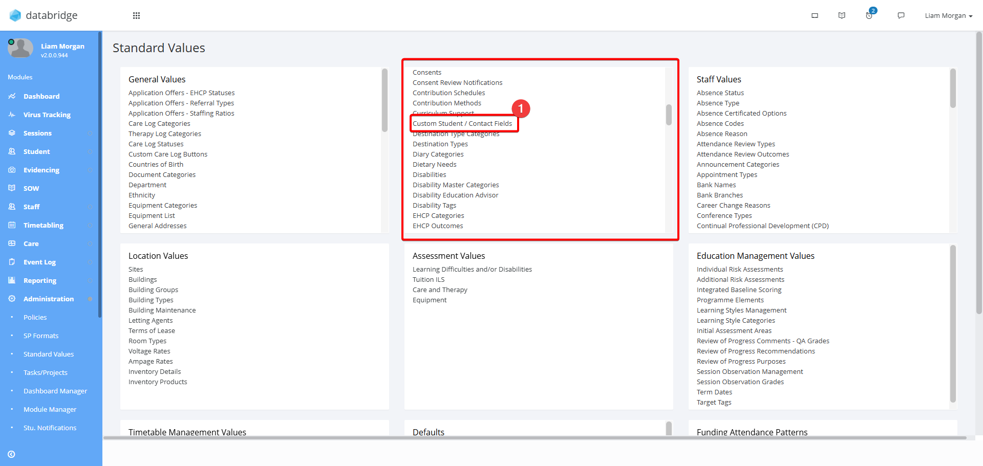 1. First, navigate to Administration > Standard Values.