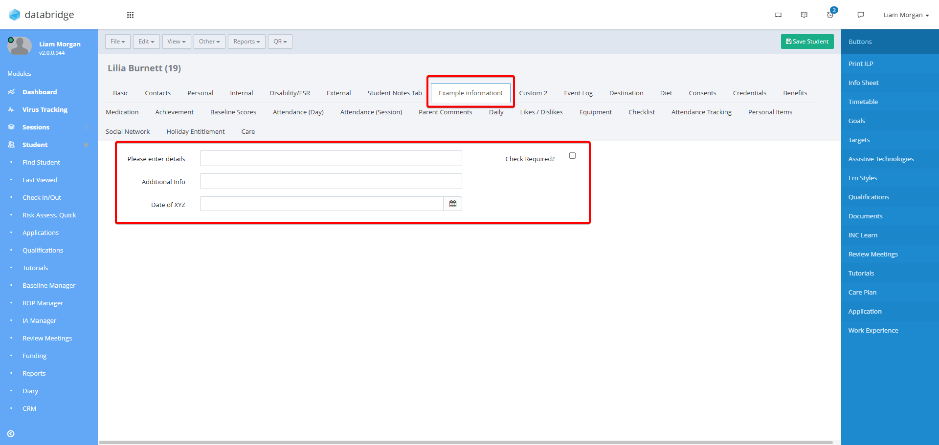 This guide will look at how to configure the custom tabs within the Student record.